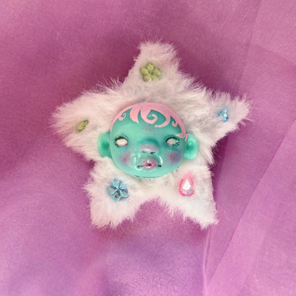 2way barrette et broche, porte ce bonhomme affreux comme tu le souhaites que ce soit sur tes vêtements ou sur tes cheveux ! 5 modèles uniques sont disponibles à l’adoption, choisis ton préféré !